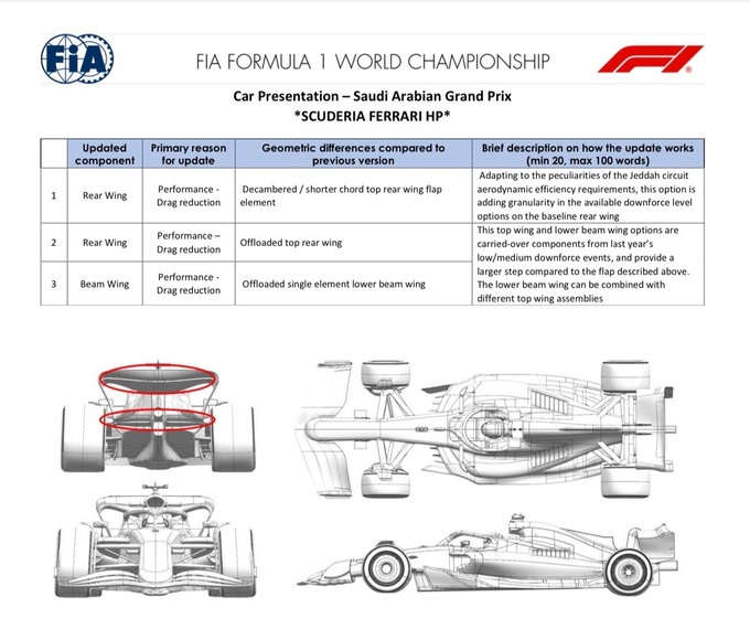 Італійці також зробили ставку на зменшення аеродинамічного опору. Було представлено заднє крило зі зменшеним профілем та односекційне бім-крило, орієнтовані на максимізацію швидкості на прямій.