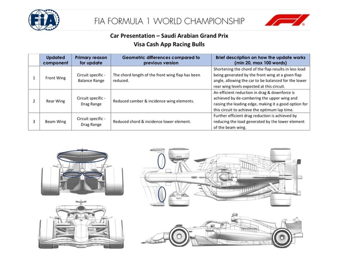 Команда продовжує працювати над зменшенням опору та вдосконаленням стабільності у швидкісних секторах. У Саудівській Аравії Рейсінг Буллз привезли розвантажені версії одразу трьох основних елементів аеродинаміки – переднього крила, заднього крила та бім-крила. Такий пакет дозволяє досягти конкурентної швидкості на прямих, що є критично важливим у Джидді. Водночас, завдяки злагодженому поєднанню оновлень, команда прагне зберегти стабільність боліда навіть за умов агресивного кермування.