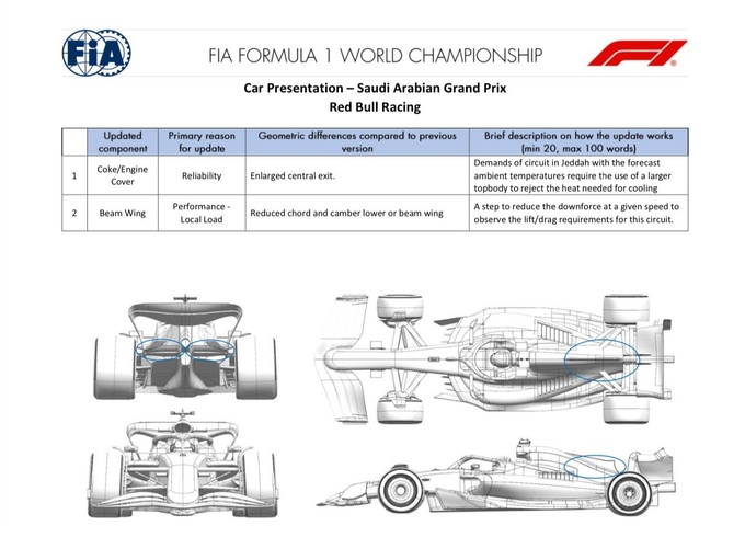 Ред Булл зосередилися на деталях у зоні моторного відсіку: оновлена секція розміщення мотора в кожусі двигуна тепер має ще більшу відкритість, що сприяє кращому тепловідведенню. Це особливо актуально на трасі з високими температурами і довгими зонами повного газу. Крім того, команда підготувала полегшену версію бім-крила, яка зменшує притискну силу та дозволяє машині краще розганятися на довгих прямих Джидди. Це оновлення також допомагає зменшити лобовий опір, не погіршуючи загальний баланс боліда.