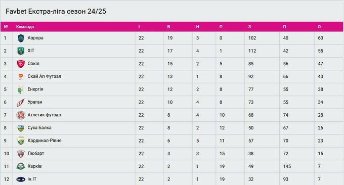 Сьогодні, 18 квітня, завершилась регулярна частина української футзальної Екстраліги 2024/25. За підсумками матчу останнього туру визначились усі пари суперників у чвертьфіналі плей-офф: