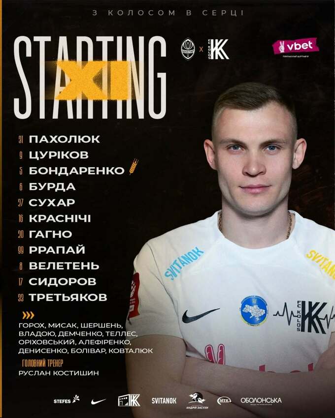 «Колос»: Пахолюк – Цуріков, В. Бондаренко (Теллес, 46), Бурда, Сухар – Ррапай (Оріховський, 89), Краснічі, Гагнідзе (Демченко, 89) – Велетень, Сидоров (Болівар, 71), Третьяков (Алефіренко, 72).