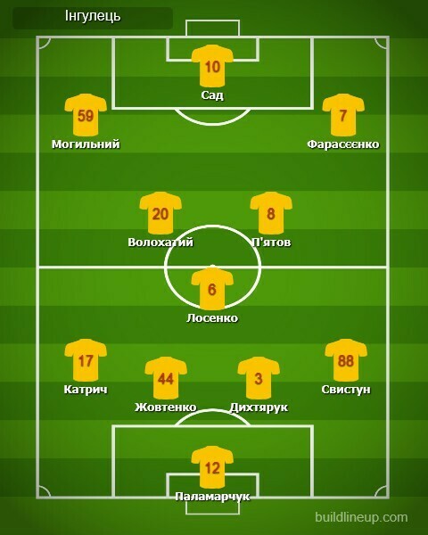 «Інгулець»: Паламарчук, Жовтенко (Малиш, 75), Дихтярук, Свистун (Дубілей, 84), Катрич, Лосенко, Фарасєєнко (Бенедюк, 84), П'ятов (Гаджук, 67), Волохатий, Сад (Попов, 67), Могильний