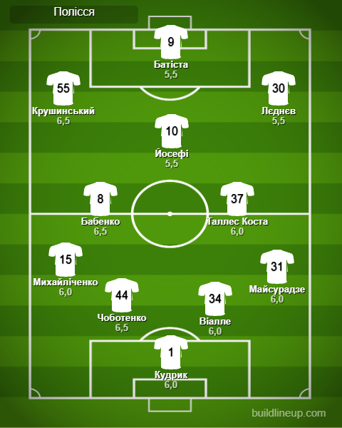 «Полісся» (заміни): Тейлор – 6,0, Гуцуляк – 6,5, Назаренко – 6,0, Андрієвський – 5,5, Сарапій – 5,5