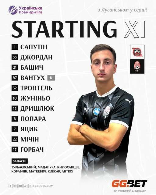«Зоря»: Сапутін – Жуніньйо (Слесар, 65), Башич, Джордан, Тронтель (Кирюханцев, 65) – Дришлюк, Попара, Мічин (Антюх, 46) – Вантух, Горбач (Маткевич, 80), Яцик.