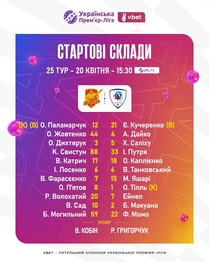 У неділю, 20 квітня, о 15:30 відбудеться матч 25-го туру Української Прем'єр-ліги 2024/2025, у якому зіграють «Інгулець» та «ЛНЗ».