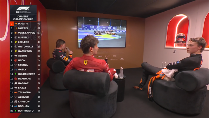 За підсумками гонки Формули-1 у Саудівській Аравії перемогу здобув пілот Макларена Оскар Піастрі, який випередив Макса Ферстаппена та Шарля Леклера.