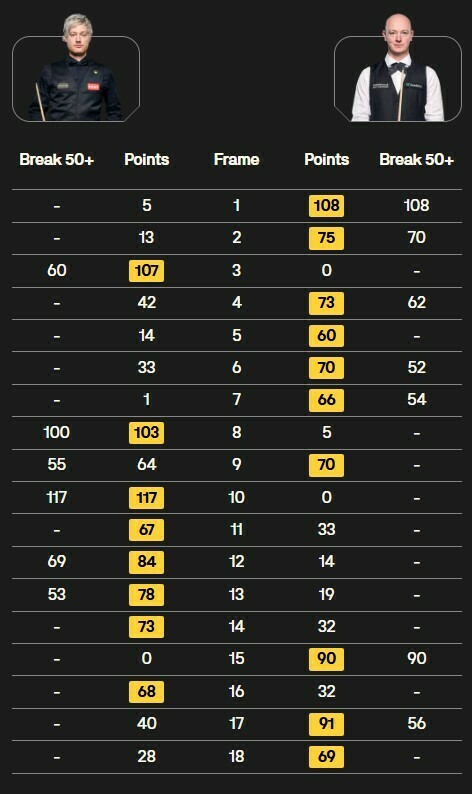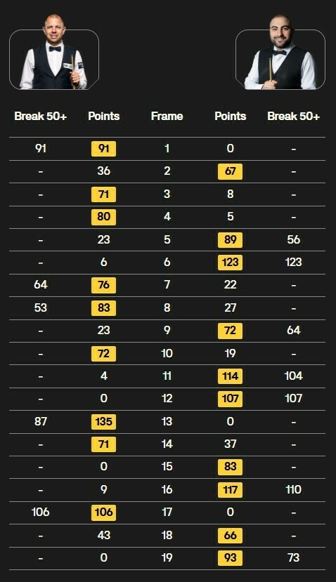 Напружений 18-й фрейм залишився за Вафаей, а у вирішальному іранець зробив ту саму емоційну серію в 73 очки та здобув перемогу. Це був перший момент у матчі, коли він вийшов уперед.