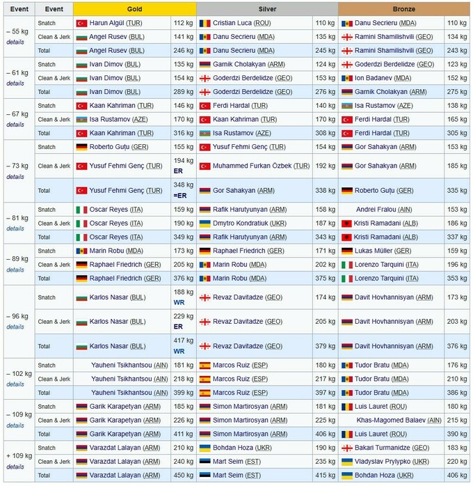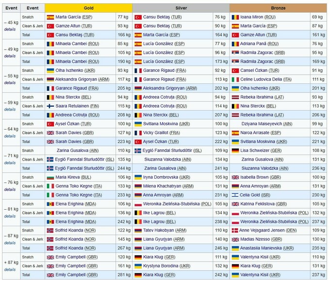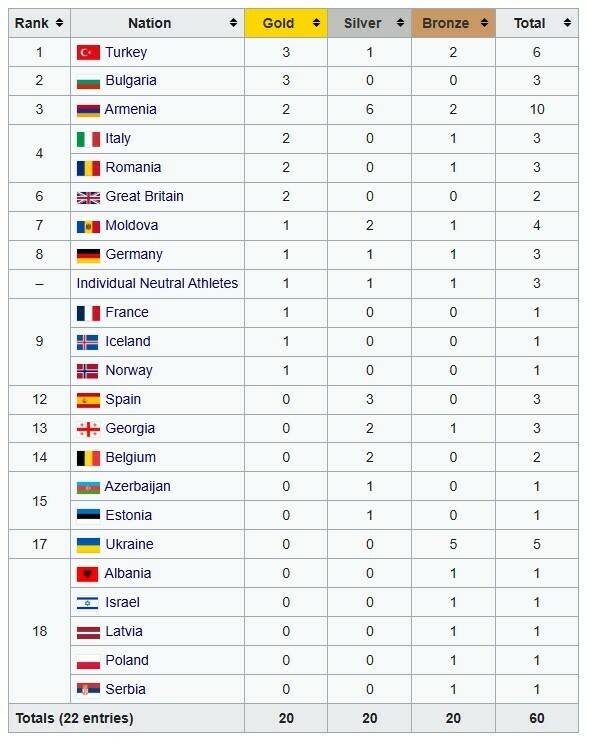 Медальний залік ЧЄ з важкої атлетики. Збірна України взяла 13 медалей