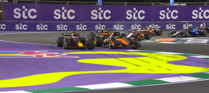 Розв’язка Гран-прі Саудівської Аравії 2025 року почалася ще на стартовій прямій. Оскар Піастрі зреагував краще за Макса Ферстаппена, набравши швидкість на стартових 200 метрах на 0,2 секунди швидше, у австралійця перший ривок був одним з кращих у пелотоні. Цього вистачило, щоб нав'язати боротьбу по внутрішній траєкторії – саме вона традиційно вважається найзручнішою для атак, особливо в перших поворотах Джидди.