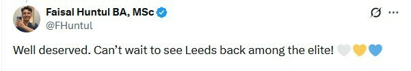 Faisal Huntul BA: Заслужено. Не можу дочекатися, щоб знову побачити Лідс серед еліти!