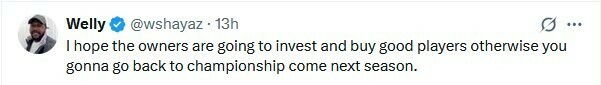 Welly: Я сподіваюся, що власники збираються інвестувати і купувати хороших гравців, інакше ви повернетеся до Чемпіоншипу в наступному сезоні.