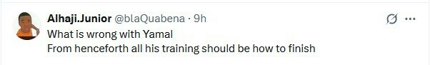 Alhaji.Junior: Що не так із Ямалом? Відтепер усі його тренування мають бути спрямовані на те, як забити.