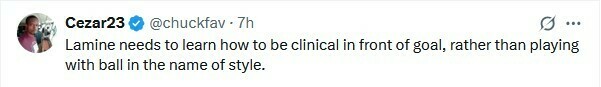Cezar23: Ламіну потрібно навчитися діяти холоднокровно біля воріт, а не грати з м'ячем в ім'я стилю.