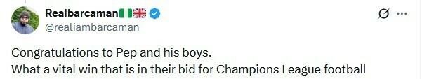 Realbarcaman: Вітаємо Пепа та його хлопців. Яка важлива перемога у їхньому прагненні до виходу до Ліги чемпіонів.