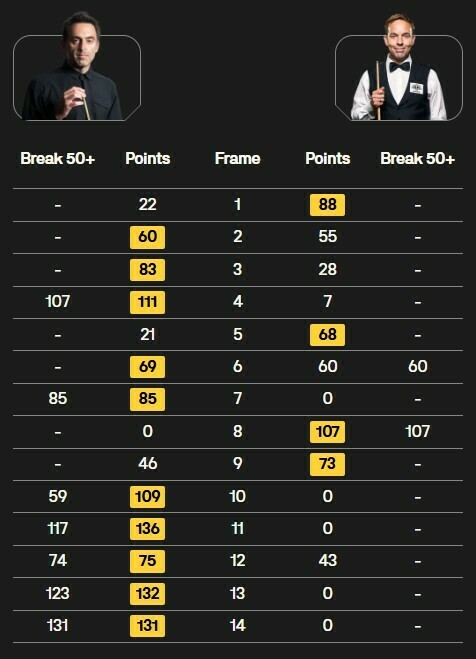 Ронні О'Салліван (Англія) – Алі Картер (Англія) – 10:4
