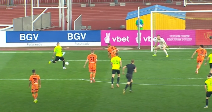 Вінгер збірної України опинився перед воротами Дмитра Різника, але пробив повз, хоча мав відкритий дальній кут.