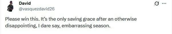 David: Будь ласка, виграйте це. Це єдиний порятунок після невтішного, я смію сказати, ганебного сезону.