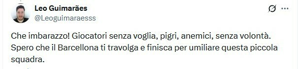 Leo Guimarães: Як соромно! Гравці без бажання, ліниві, анемічні, без волі. Сподіваюся, «Барселона» здолає вас і врешті-решт принизить цю маленьку команду.