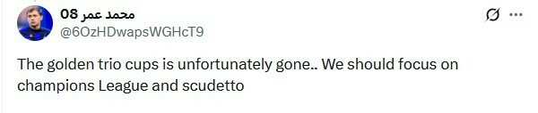 محمد عمر 08: Золотого тріо кубків, на жаль, не буде. Треба зосередитися на Лізі чемпіонів та Скудетто.