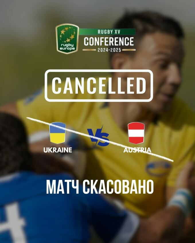 Через форс-мажорні обставини скасовано матч України та Австрії у чемпіонаті Європи з регбі (дивізіон Conference), який мав відбутися 26 квітня.