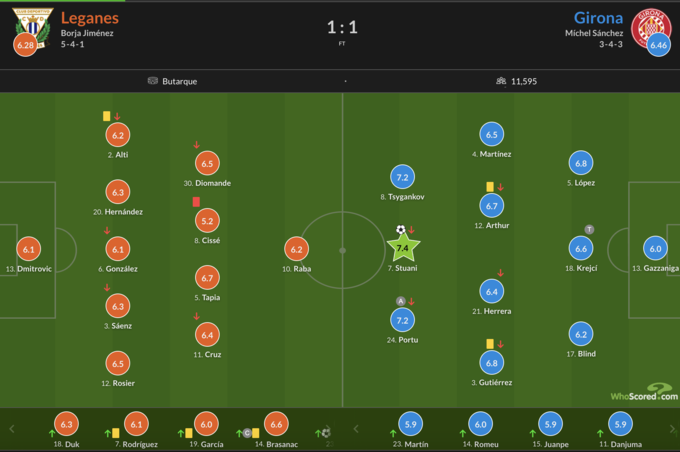 Героєм поєдинку став автор забитого голу за «Жирону» Крістіан Стуані, який отримав від авторитетного порталу WhoScored 7.4 бали.