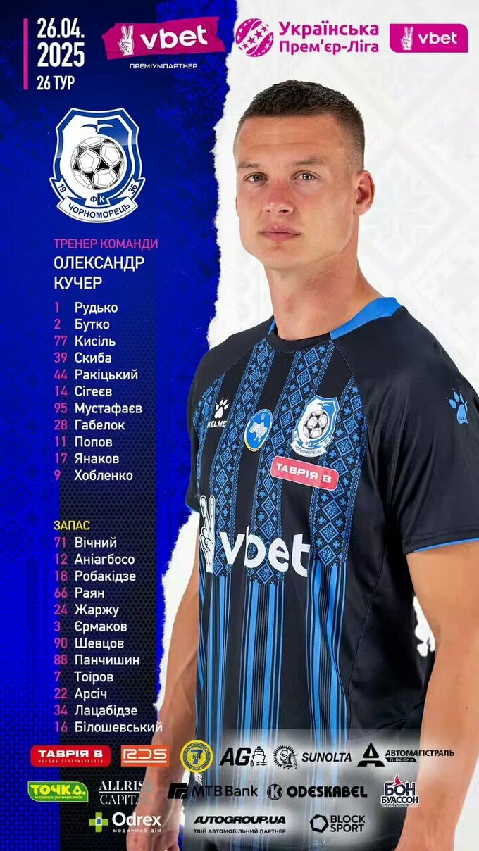 26 квітня відбудеться матч 26-го туру Української Прем'єр-ліги 2024/25, в якому зустрінуться одеський «Чорноморець» та львівський «Рух».