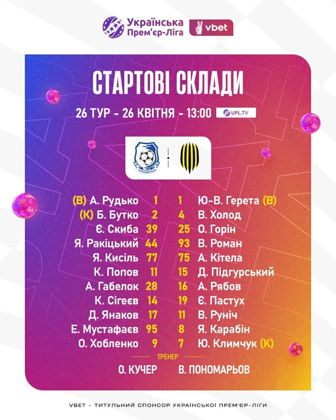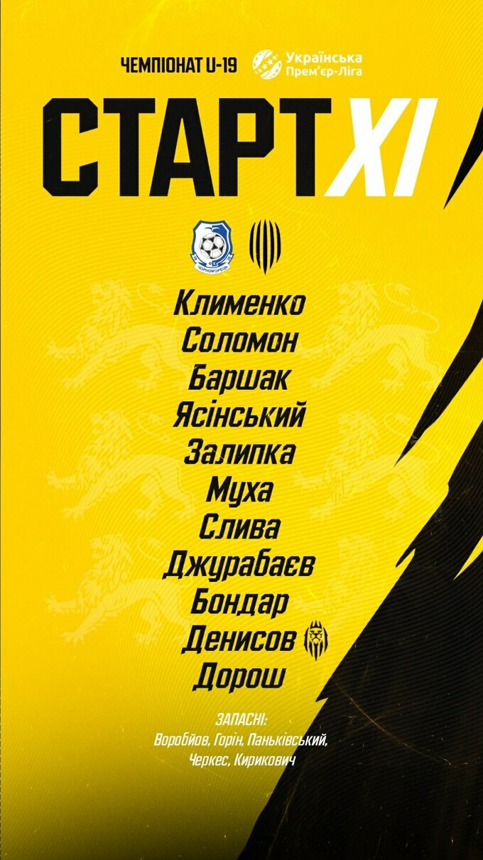 Стартові склади на матч Чорноморець – Рух: