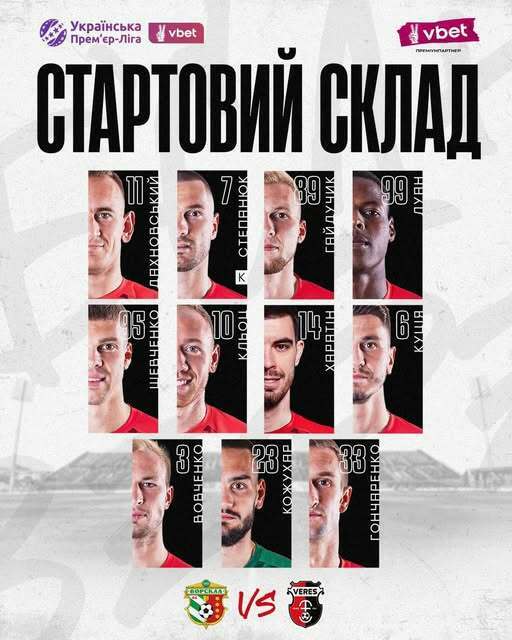 «Верес»: Кожухар – Шевченко, Вовченко (Балаба, 46), Гончаренко, Куція – Харатін (Кучеров, 62), Кльоц – Дахновський (Венделл, 72), Луан (Годя, 62) – Гайдучик (Шарай, 46), Степанюк.
