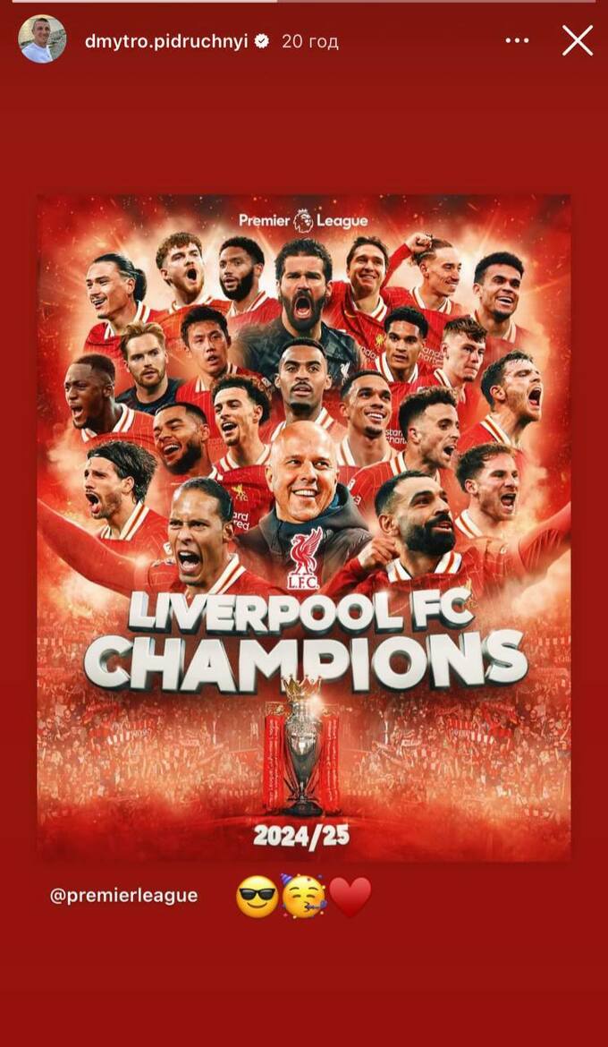 Лідер та капітан збірної України з біатлону Дмитро Підручний у соціальній мережі Instagram відреагував на дострокову перемогу «Ліверпуля» в Англійській Прем'єр-лізі-2024/25.