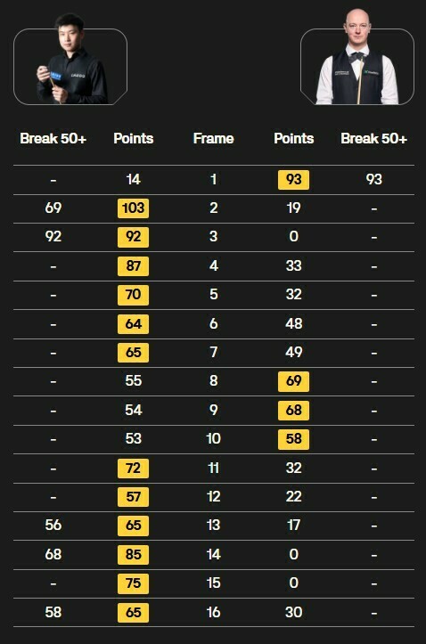 Чжао Сіньтун (Китай) – Кріс Вейклін (Англія) – 12:4 (друга сесія)