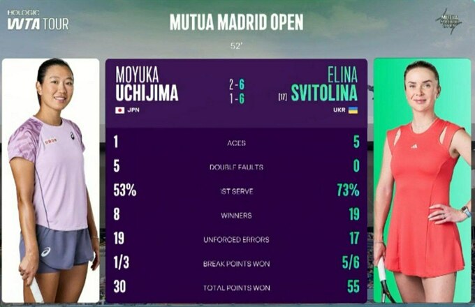 Sensational Svitolina 👊@ElinaSvitolina is yet to drop a set as she moves into the semifinals in Madrid after defeating Uchijima 6-2, 6-1!#MMOPEN pic.twitter.com/ItkWnXLNlt