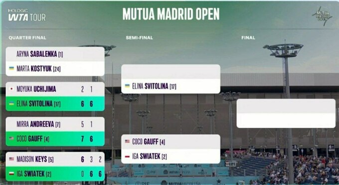 Світоліна виграла 11-й матч поспіль. До старту в Мадриді вона здобула дві перемоги за збірну України у Кваліфікації Кубку Біллі Джин Кінг, а потім взяла трофей на змаганнях WTA 250 у Руані, вигравши у п'ятьох суперниць. Крім того, за всі 11 виграних матчів Еліна жодного разу не віддала сет – 22:0 за партіями.