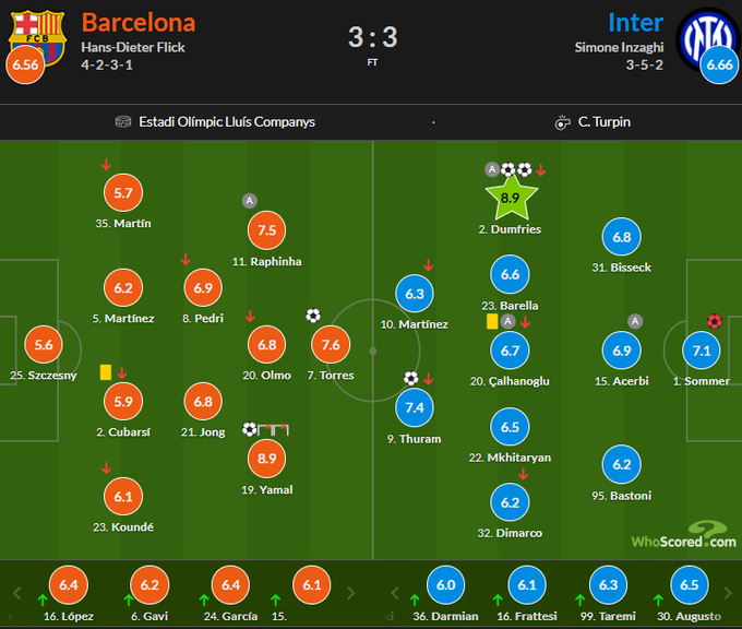 Оцінки WhoScored за матч Барселона – Інтер (3:3)