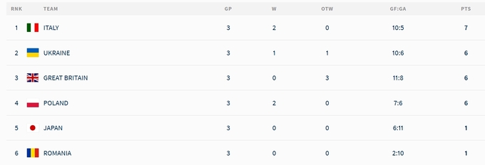 Лідирує збірна Італії з 7 очками, а по шість пунктів мають не лише Україна, а і Польща з Великою Британією.