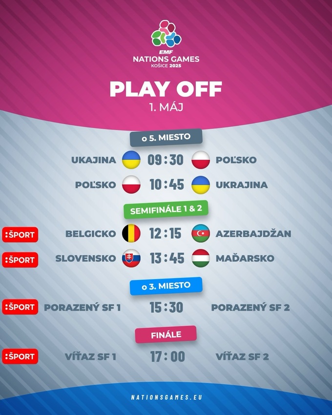 1 травня відбудуться матчі за 5-те місце між Україною та Польщею (10:30 і 11:45), півфінальні поєдинки (13:15. Бельгія – Азербайджан, 14:45. Словаччина – Угорщина), а також матчі за бронзу (16:30) та золото (18:00).