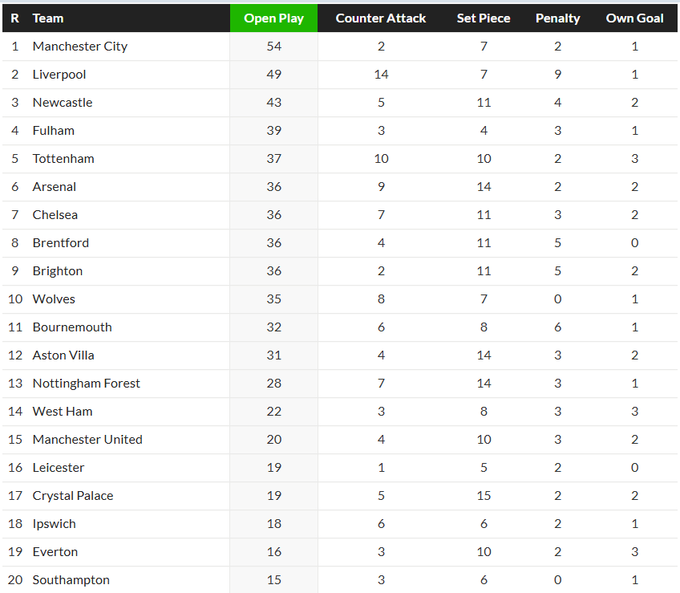 «Містяни» – найкращі у країні в аспекті навіть у настільки кризовий рік. Причому з відривом – 54 голи, найближчий переслідувач, «Ліверпуль», оформив тільки 49. Насправді, це цікаво: всі критикують «Манчестер», а він знову домінує, нехай навіть тільки й у цьому аспекті. Якщо з наступного сезону команда «вилікує» свою оборону від пропущених та зовсім трохи зможе додати в аспекті стандартів в атаці (7 голів, а усі прямі конкуренти – «Астон Вілла», «Челсі», «Ноттінгем» та «Ньюкасл» – мають щонайменше по 11), то знову зможе розривати. До «Ліверпуля» питань нема, бо, нехай він і завдячує контратакам як ніхто інший у лізі (аж 14 голів), все одно заносить майже по півтора голи за матч з позиційної гри. «Ньюкасл» усі називають атлетичною командою, але він ще й досить добре грає у футбол – третій за голами в позиційних атаках. «Фулгем» аж на 4 позиції вище тут, аніж в реальній таблиці. Ось тому Марко Сілву і хоче «Тоттенгем»: бо цей зміг поставити позиційний напад навіть клубу з 17-м за ціною складом у лізі.