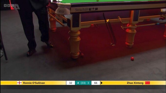 Глядачі сприйняли момент з усмішкою, а Чжао зберіг холоднокровність, довів брейк до кінця та зрівняв рахунок у матчі (4:4).