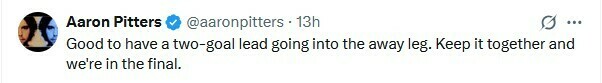 Aaron Pitters: Добре мати перевагу в два голи перед виїзним матчем. Тримаймося, і ми у фіналі.