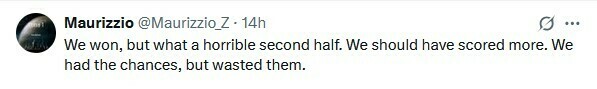 Maurizzio: Ми виграли, але який жахливий був другий тайм. Ми мали забивати більше. У нас були шанси, але ми їх змарнували.