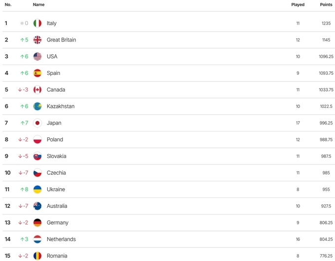 Після того, як українські тенісистки виграли Кваліфікаційну групу E та вийшли до фінального етапу Кубка Біллі Джин Кінг 2025, національна команда України піднялася в світовому рейтингу одразу на вісім позицій. Це найпотужніший прорив серед збірних у верхній частині рейтингу після квітневих кубкових поєдинків.