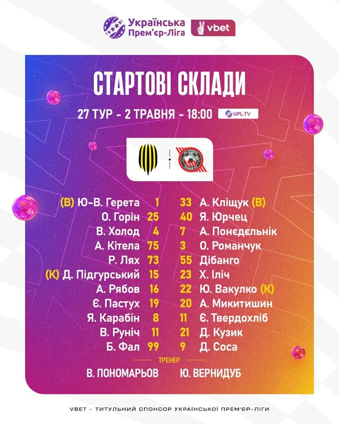 Віталій Пономарьов та Юрій Вернидуб визначились зі стартовими складами своїх команд на майбутній матч. Обійшлось без неочікуваних рішень з боку обох фахівців.
