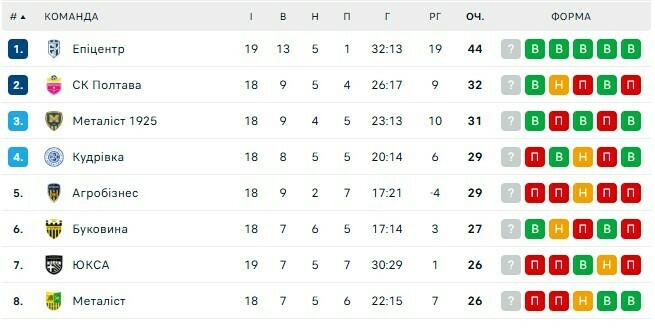 Турнірна таблиця Першої ліги. Епіцентр достроково вийшов до УПЛ