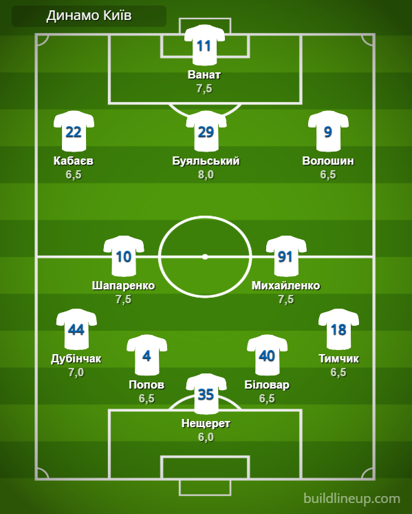 «Динамо» Київ (заміни): Бражко – 6,0, Піхальонок – 6,0, Брагару – 6,0, Дячук – 6,0, Рубчинський – б/о.