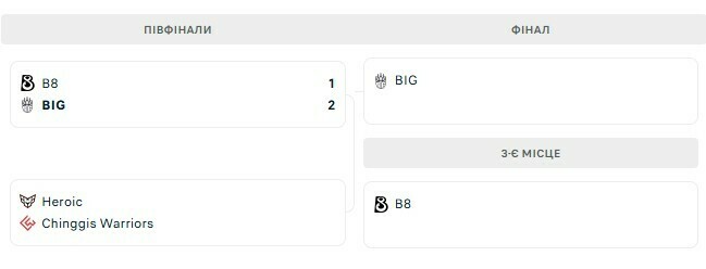 Матч з BIG у груповій стадії взагалі не вдався у B8. Там німці включились та досить легко перемогли команду з України – 2:0 (13-4 на Mirage та 13-7 на Inferno).