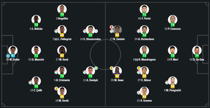 Найкращим гравцем матчу за версією обох порталів став голкіпер господарів поля Міле Свілар, на рахунку якого 5 сейвів та оцінки 8.3 і 7.9.