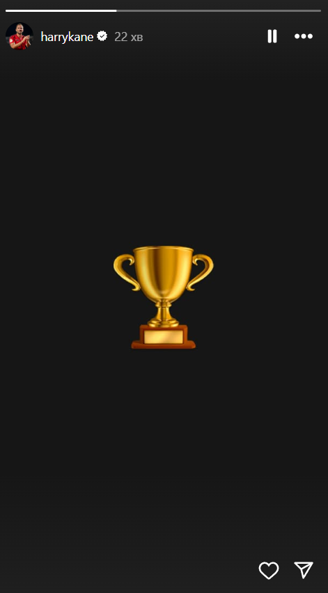 Одразу після завершення матчу, який гарантував Кейну перший трофей у кар'єрі, форвард опублікував небагатозначну Stories у своєму Instagram-акаунті: