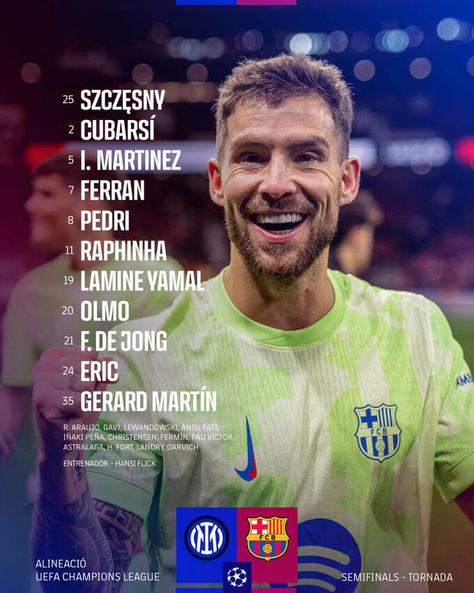 6 травня відбудеться матч-відповідь 1/2 фіналу Ліги чемпіонів 2024/25 між командами Інтер Мілан і Барселона [перший поєдинок – 3:3].