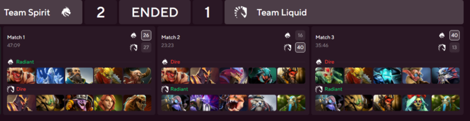 Команда Team Liquid програла російській команді Team Spirit з українцем Іллею «Yatoro» Мулярчуком у складі. Зустріч завершилася з рахунком 1:2.