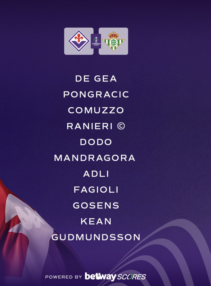 «Фіорентина»: Де Хеа, Паонгранчич, Комуццо, Раньєрі, Додо, Мандрагора, Адлі, Фаджолі, Госенс, Гудмундссон, Кін.