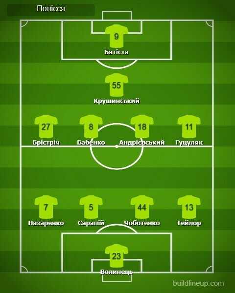 «Полісся»: Волинець – Назаренко (Гонсалвеш, 69; Йосефі, 89), Сарапій, Чоботенко, Тейлор (Хадрой, 46) – Брістріч (Караман, 69), Бабенко, Андрієвський, Гуцуляк – Крушинський – Батіста.